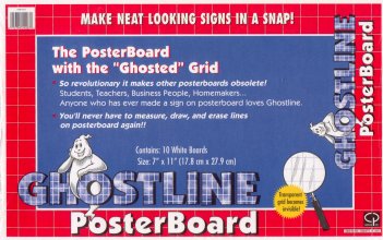 Among those who dread making posters most are students and their parents. Until now, in order to prepare the poster board, they had the tedious and time-consuming task of measuring and drawing faint pencil-lines before beginning their projects. The alternative was a poster where the lines went uphill or downhill. Now, however, students can get a great result every time by using Ghostline®, the poster board with the "ghosted" grid. The lines are easy to see at writing distance but seem to disappear once there is lettering or drawing on the board.